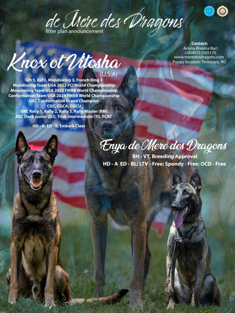 After 3 years of wait, it’s OFFICIAL! Litter of KNOX ot Vitosha x Enya de Mere des Dragons is just a few months apart. Enya should enter heat by end of the year beginning of 2026. We will use Artificial Insemination for this combination as Knox is living in the USA